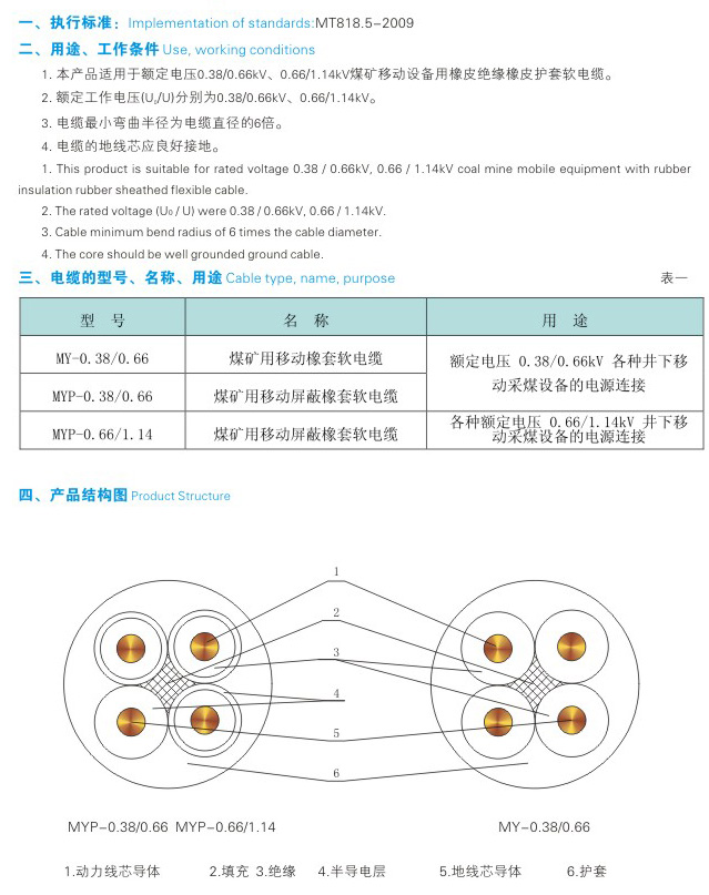 額定電壓0.66/1.14kV及以下移動(dòng)軟電纜